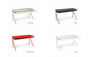 An uncluttered surface. A keyboard tray. What else do you need to finish the great American novel or even the Mother of All Spreadsheets? How about some dramatic legs and color schemes? So get to it, Hemingway.